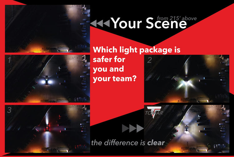 We took the new TOMAR Wildland Lighting Package, a drone, and three of the competitors “high-end” LED packages, and made a comparison. The results were clear.