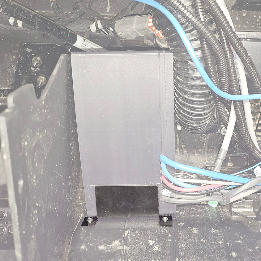 A dedicated mounting bracket is included to provide a stable and permanent installation point within the UTV. The bracket allows the enclosure to be positioned in a protected location while maintaining easy access for wiring, service, and future maintenance. Once installed, the system helps reduce vibration and movement, protecting both the electronics and wiring during aggressive riding and rough terrain use.